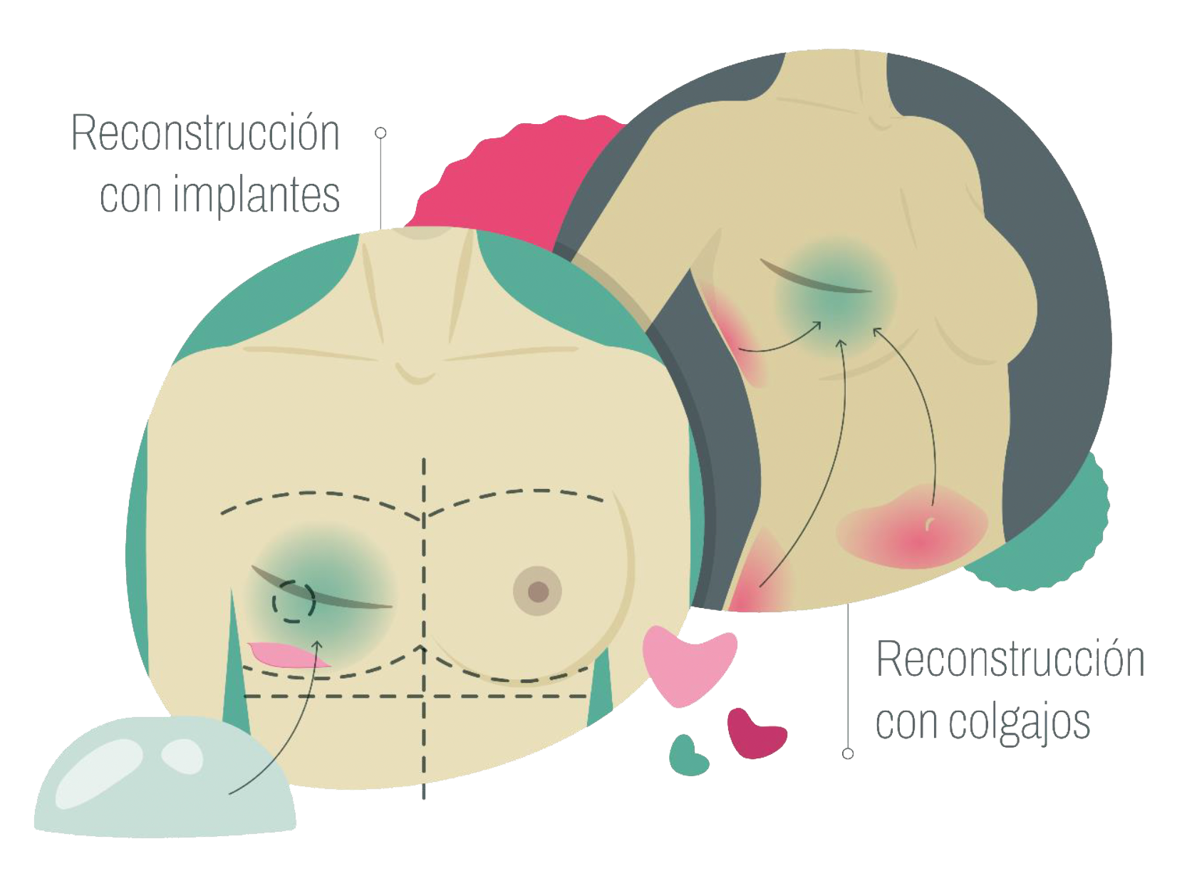 Existen diversas técnicas de reconstrucción mamaria, que pueden realizarse de manera inmediata o diferida respecto a la extirpación del cáncer. Factores como la edad, comorbilidades, tejido disponible y preferencias de la paciente influyen en la elección del tipo de reconstrucción. También es decisión de la paciente si desea o no someterse a cirugías de reconstrucción. Se destacan dos grandes grupos: la reconstrucción basada en implantes y la basada en tejido propio (colgajos).